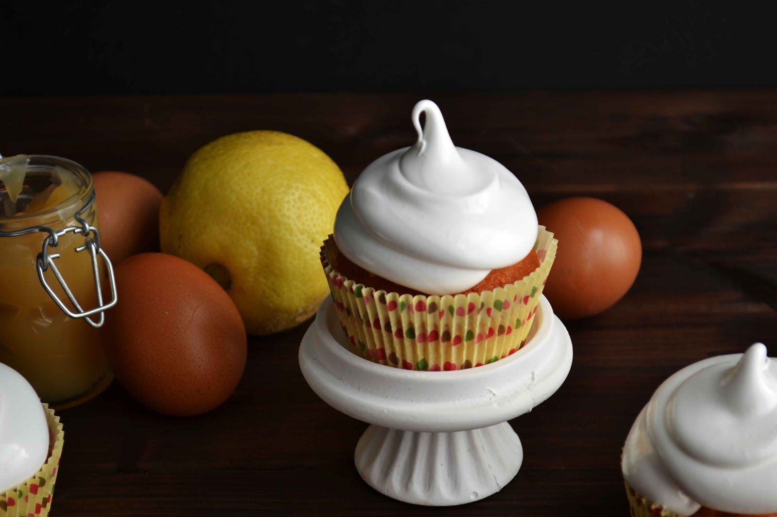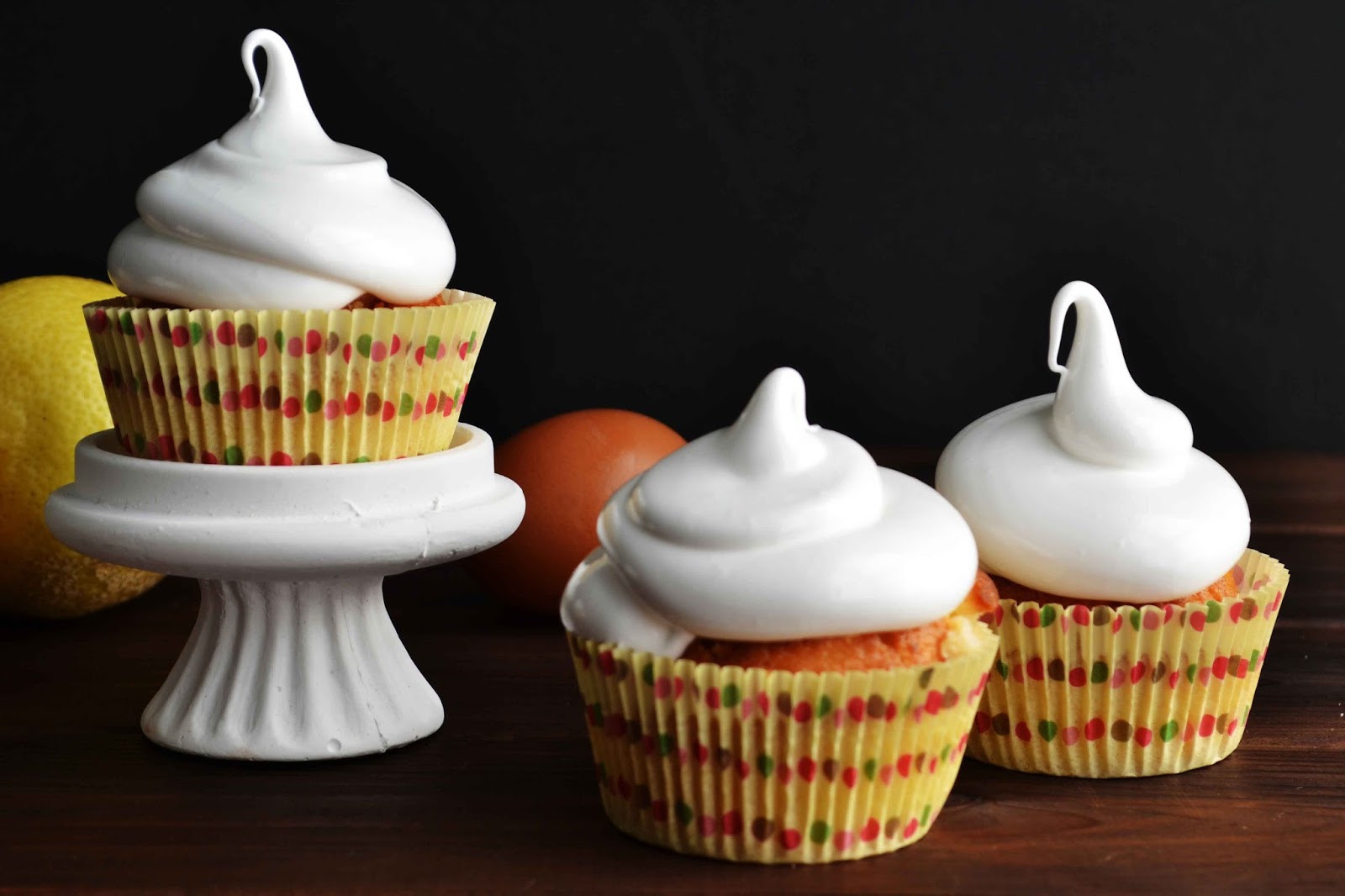 3- Cupcakes de lemon curd i merenga: dolços i amb el toc àcid de la llimona (i per celebrar també que na Maria, la meva neboda, feia 2 mesos, un dos de xocolata blanca!). Per decorar, com que havia sobrat part del paper de sucre, vaig tallar-ne quadradets i els vaig col·locar per sobre de la merenga.
