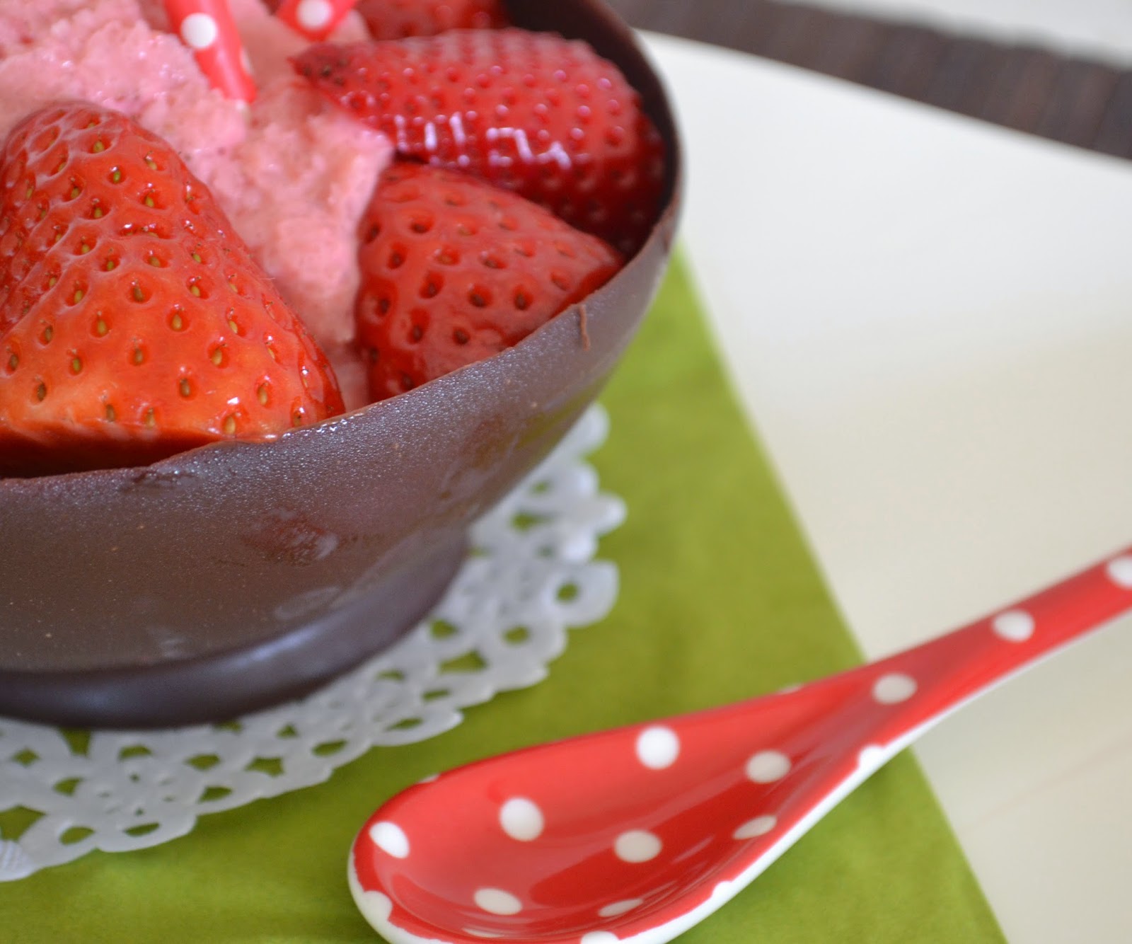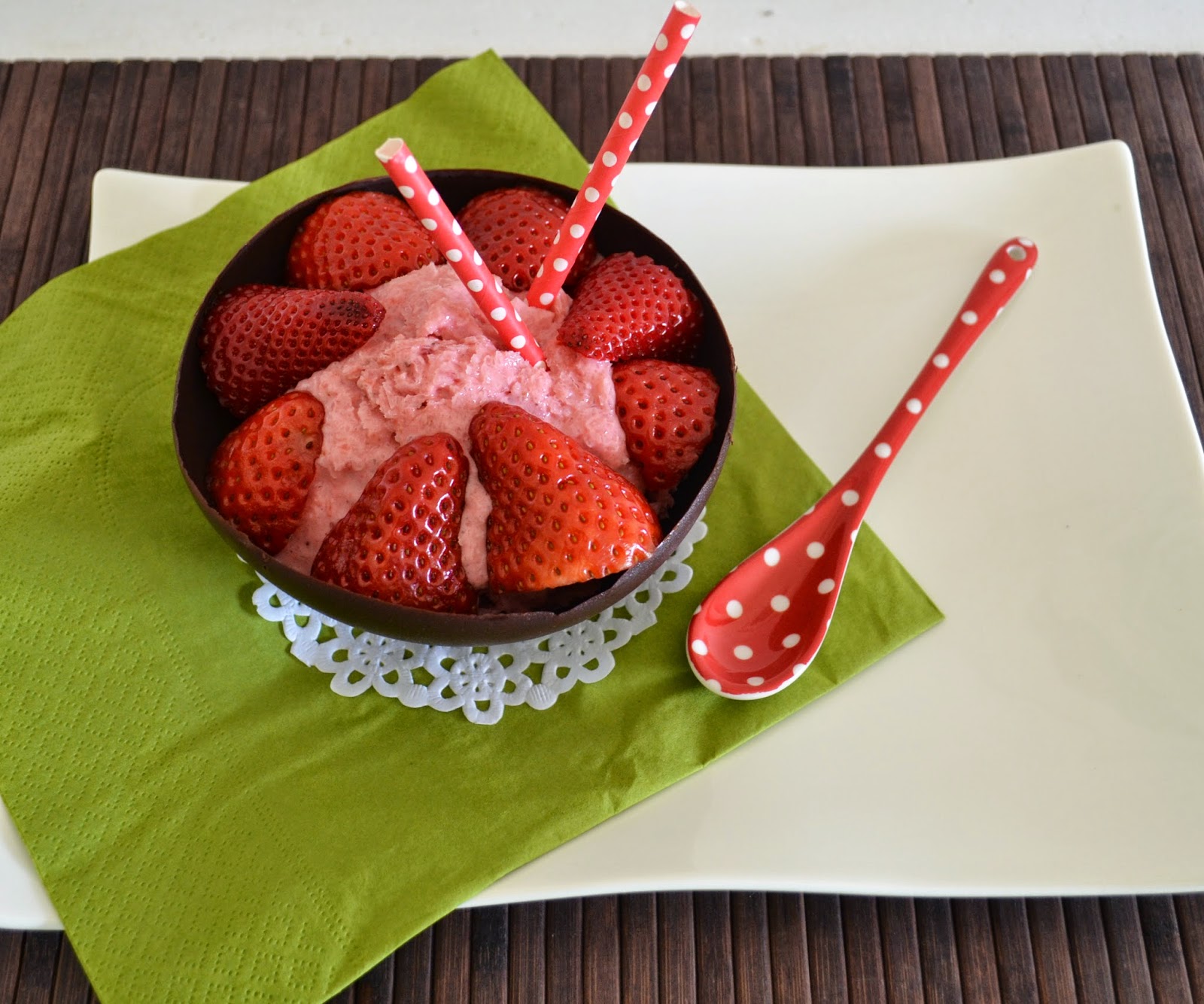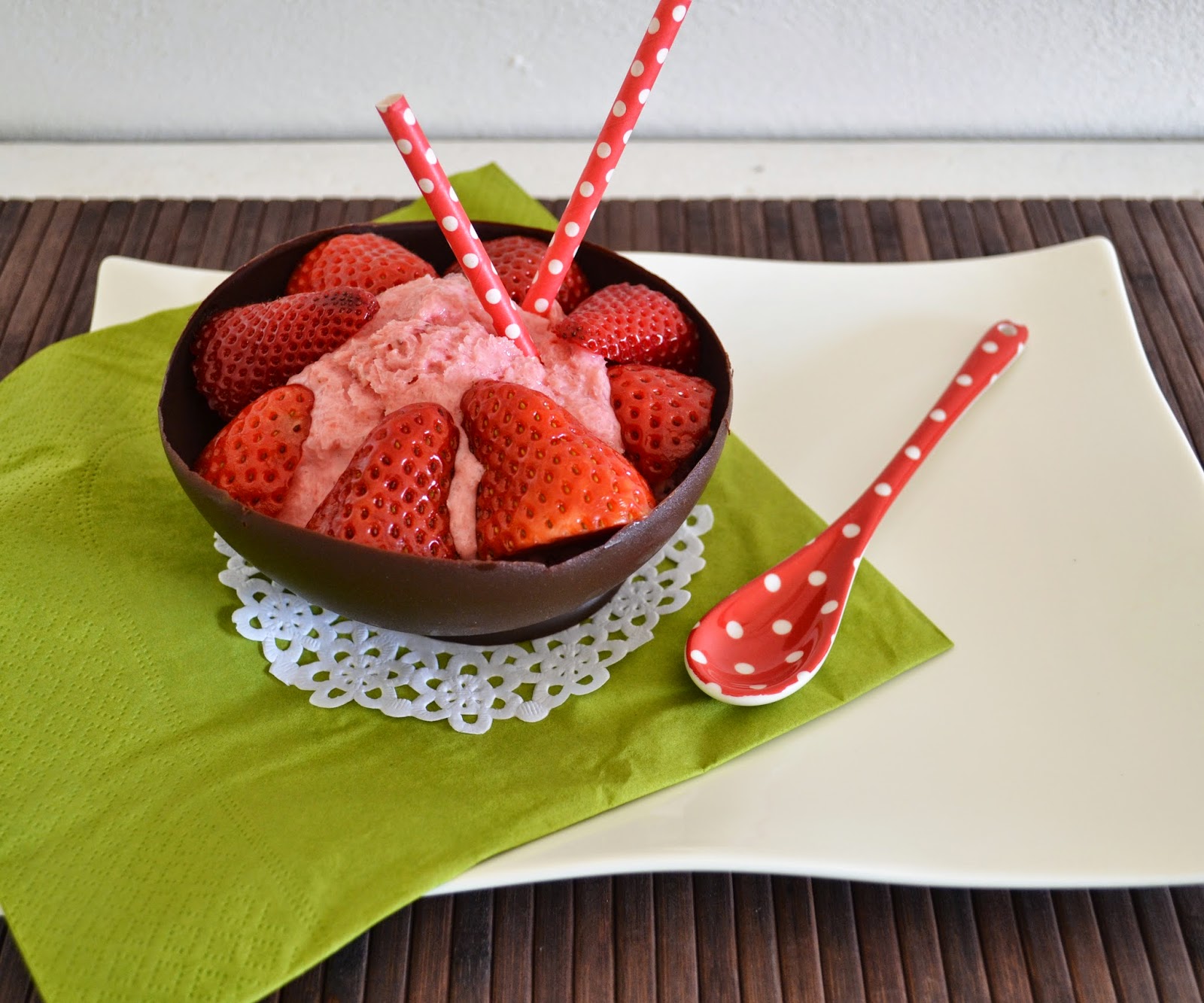 Des de fa més de deu anys som membre de l’Associació d’Amics del Museu d’Història de Manacor, gran part dels quals en som la secretària. Ens dedicam sobretot a promoure la història de la nostre ciutat amb les peces que tenim en el museu, ubicat dins una torre medieval a la sortida de Manacor. A més també programam excursions, viatges i a l’estiu, el cicle de les muses (activitats de dansa, teatre, música i fins i tot, astronomia).Doncs bé, els membres de la junta de l’Associació, a més de compartir l’interès per la cultura i la història, som amics. De tant en quant ens reunim per programar les diferents activitats. Habitualment però, les reunions en converteixen en sopar-reunió, dinar-reunió i també hem fet berenars-reunió. Res, que a vegades la reunió és més per veure’ns i menjar que per cap assumpte urgent.Avui, ha estat un d’aquests dies (això sí, avui hem decidit mooooltes coses, vos mantindré informats), dinar-reunió. I jo em vaig comprometre a dur les postres. I em vaig ficar dins un bon embull. Per què? Perquè dins un grup tan petit com el nostre hi ha diverses intoleràncies: a la lactosa, al gluten… tanta sort que no hi ha ningú diabètic, ja hagués estat un poc més complicada la cosa. Això sí, en tenim uns quants que són al·lèrgics al “plat buit”, tanta sort!El cas és que crec que me vaig passar dues setmanes pensat què podia dur i que en pogués menjar tothom. Al final vaig arribar a això. Preparau-vos!Ingredients pel bol:– Xocolata de cobertura– GlobusIngredients per la crema de iogurt:– 750 gr de maduixes– 8 iogurts naturals sense lactosa– xarop d’atzavaraPel bol:1- Inflau els globus i rentau-los bé.2- Foneu la xocolata en el microones o a bany Maria, així com vos vagi millor.3- Mesclau bé la xocolata i assegurau-vos que no queda res sense fondre.4- Agafau un globus i posau-lo dins del bol on heu fos la xocolata. Només la base. Treieu-lo i posau-lo a assecar sobre un paper de forn (així serà més fàcil desferrar-ho).5- Un cop estigui ben sec, punxau amb una agulla el globus. Perquè no es desinfli massa aviat i rompeu el bol, punxau el globus a la part superior, allà on hi heu fet el nus.Per fer la crema de iogurt: