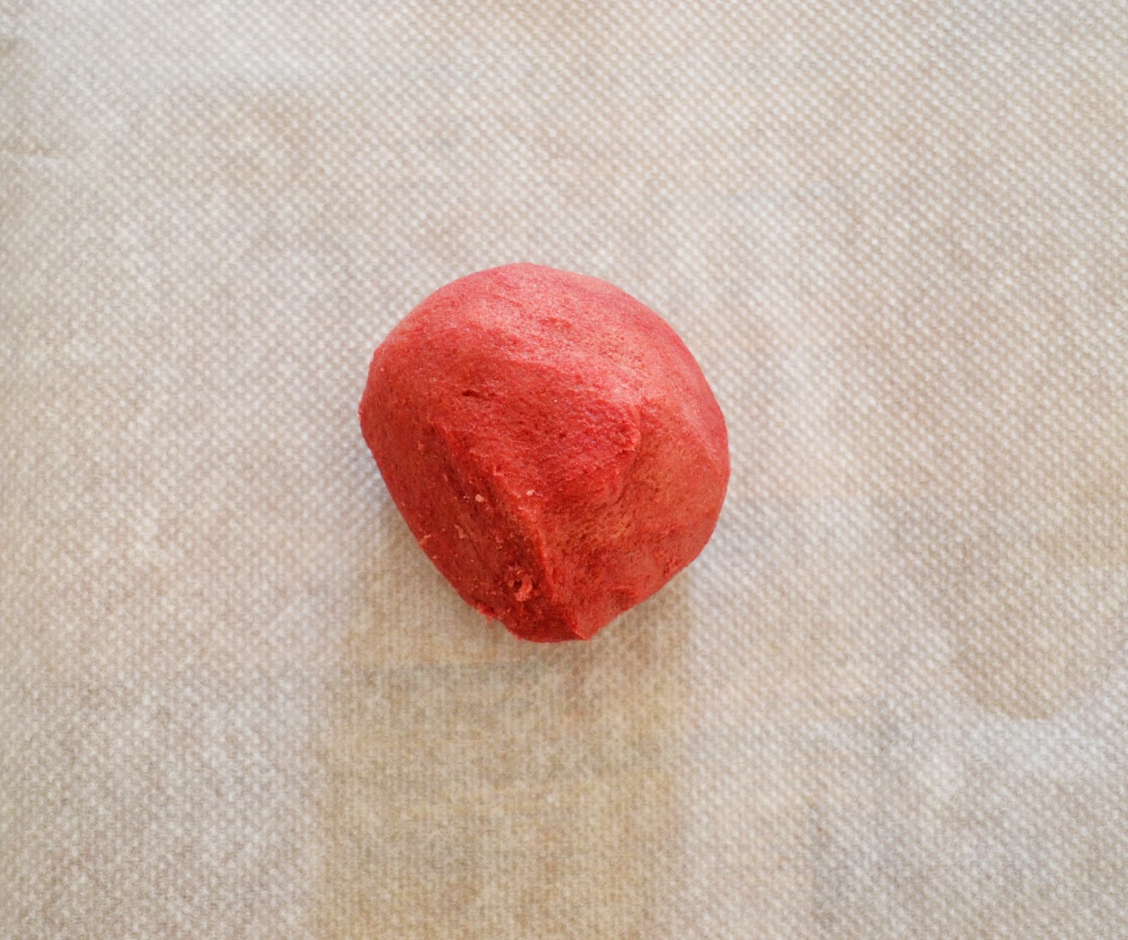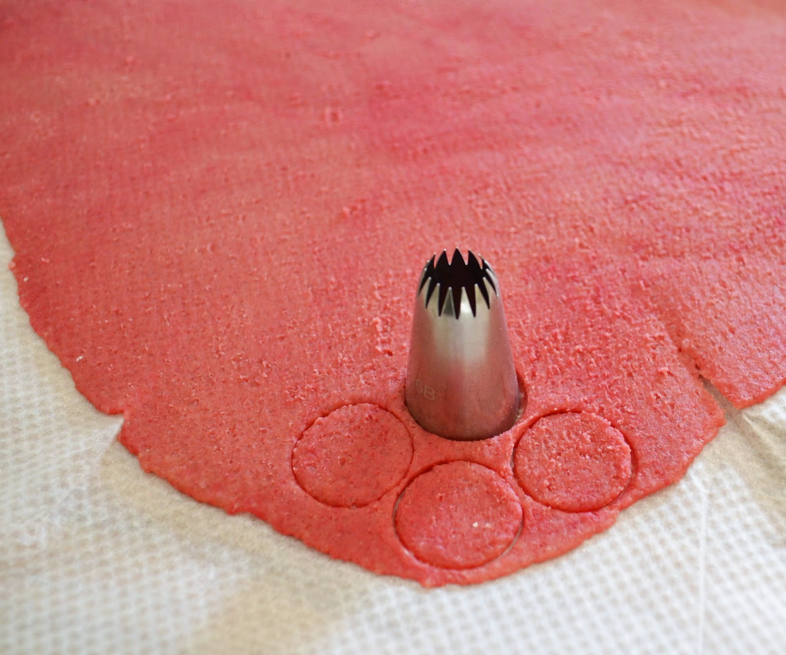 – colorant (*)Per fer la pasta pel craquelin heu de mesclar bé tots els ingredients i fer una bolla.Posau la pasta entre dos papers de forn i formau una planxa fina d’uns 2-3 mm. Posau una estona aquesta planxa dins de la gelera a fi que sigui més bona de manipular. En estar freda, tallau cercles, jo ho he fet amb una “boquilla” de màniga pastissera. Reservau-los.Pels petit choux: