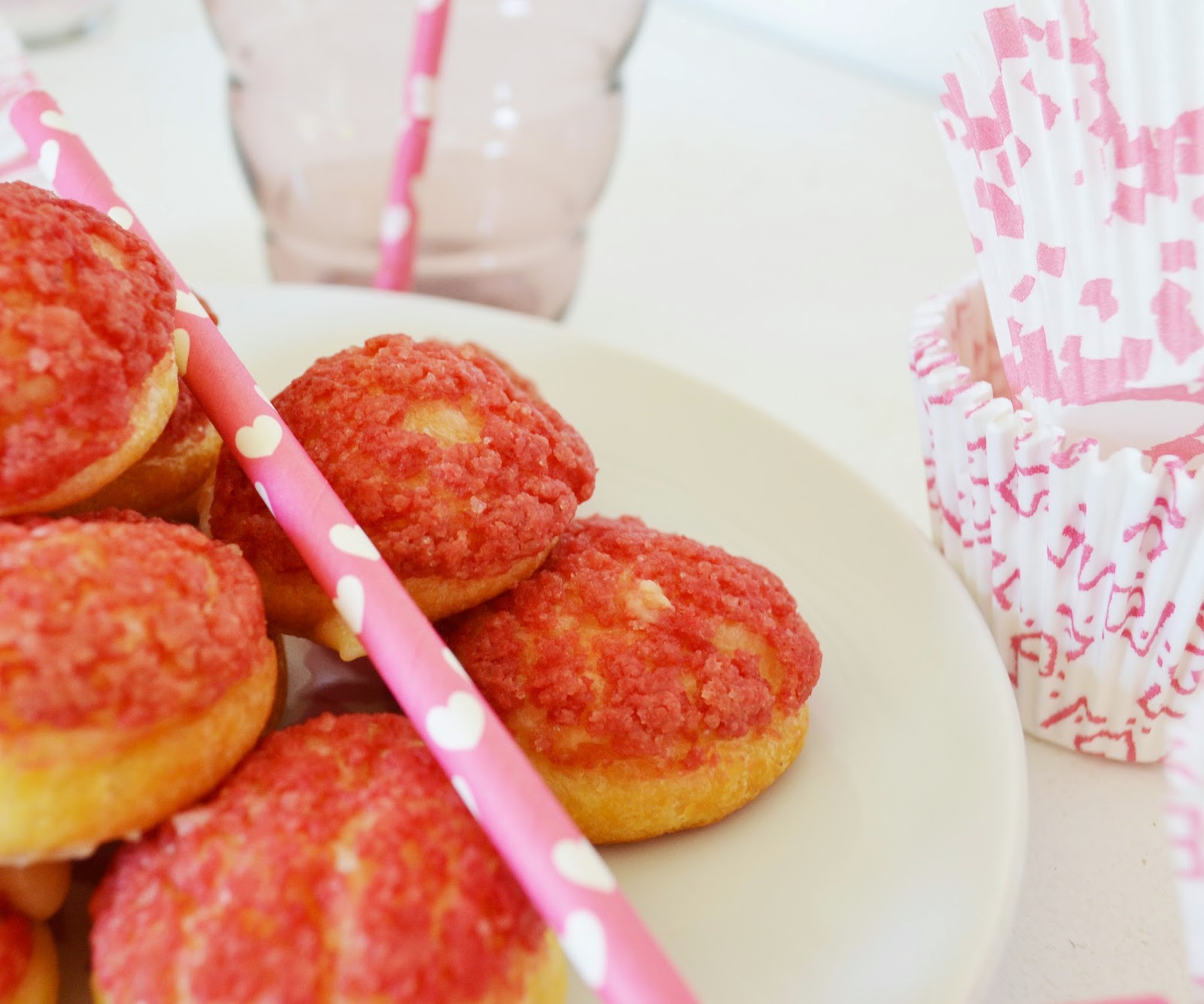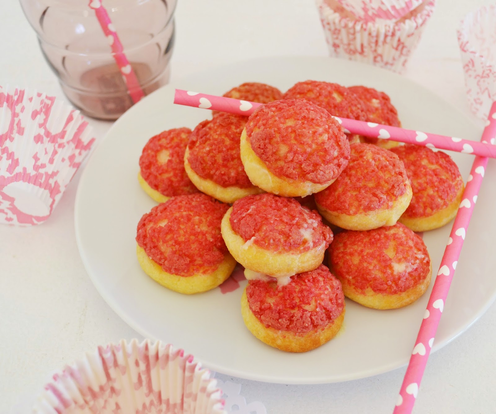 Ja sé que vaig dir que no feia coses complicades dins la cuina… i així és. Aquesta recepta no és complicada, però du feina.Des que vaig veure aquests petits pastissets a la pàgina de n’Alma Obregón tenia ganes de fer-los. Si és que no me digueu que no són una monada!? Són petitons, rodonets, de color rosa a sobre i farcits de crema! No és pot demanar més en tan poc espai.M’encantaria fer més pastissets francesos, seguiré investigant el tema. Ara mateix però, estic molt contenta que aquests mini pastissets hagin sortit tan bé i tan bons! Companys de feina… crec que dilluns no tendreu postres per després del berenar!Parau atenció perquè hi ha algunes passes. La recepta l’he treta de la pàgina Objetivo: Cupcake Perfecto.Pel craquelín: