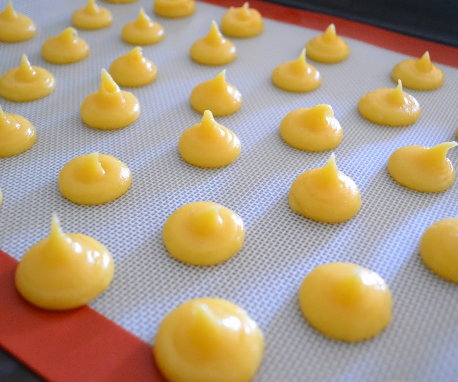 5- Passau la pasta a una màniga pastissera i feis petites bolletes sobre paper de forn o sobre una planxa de silicona.