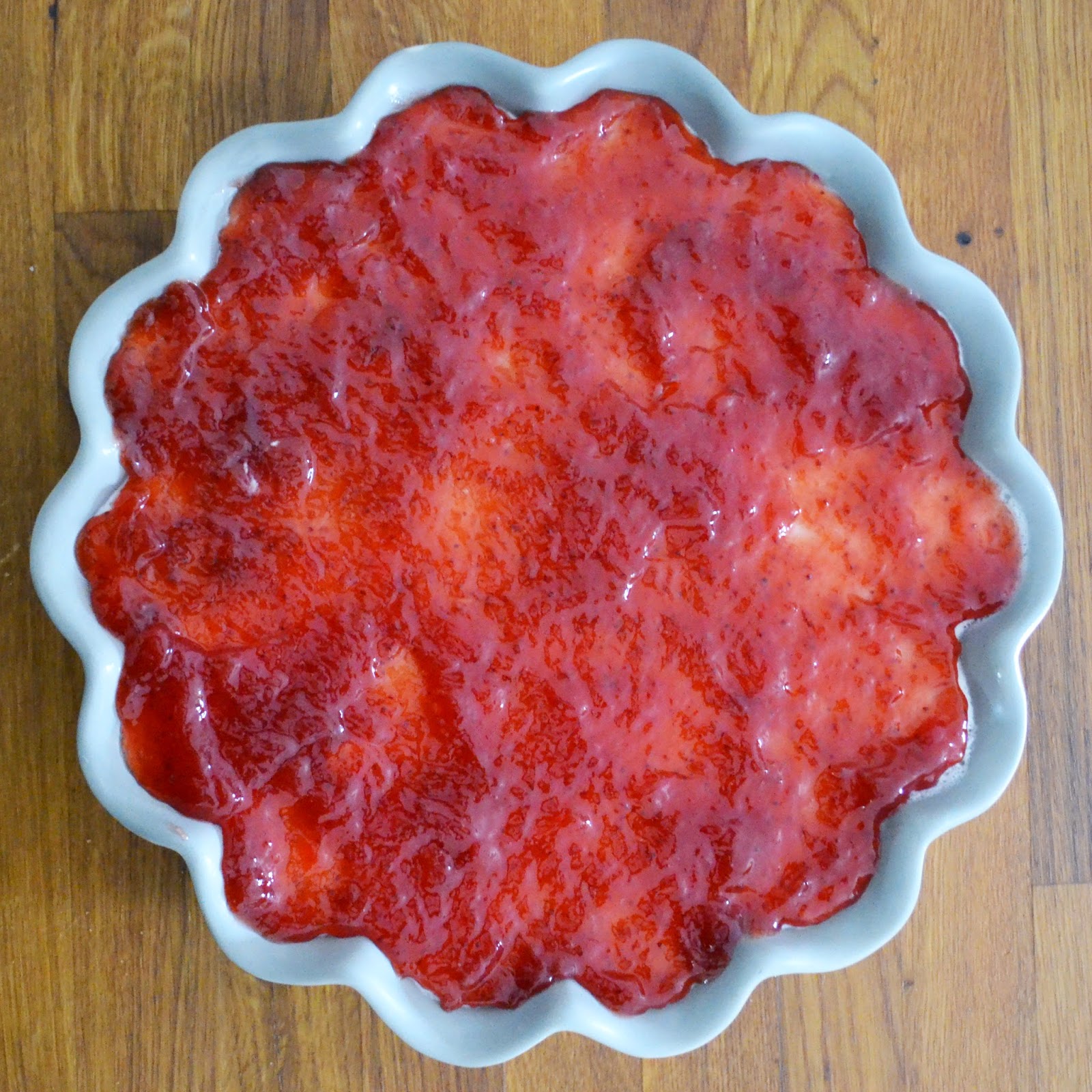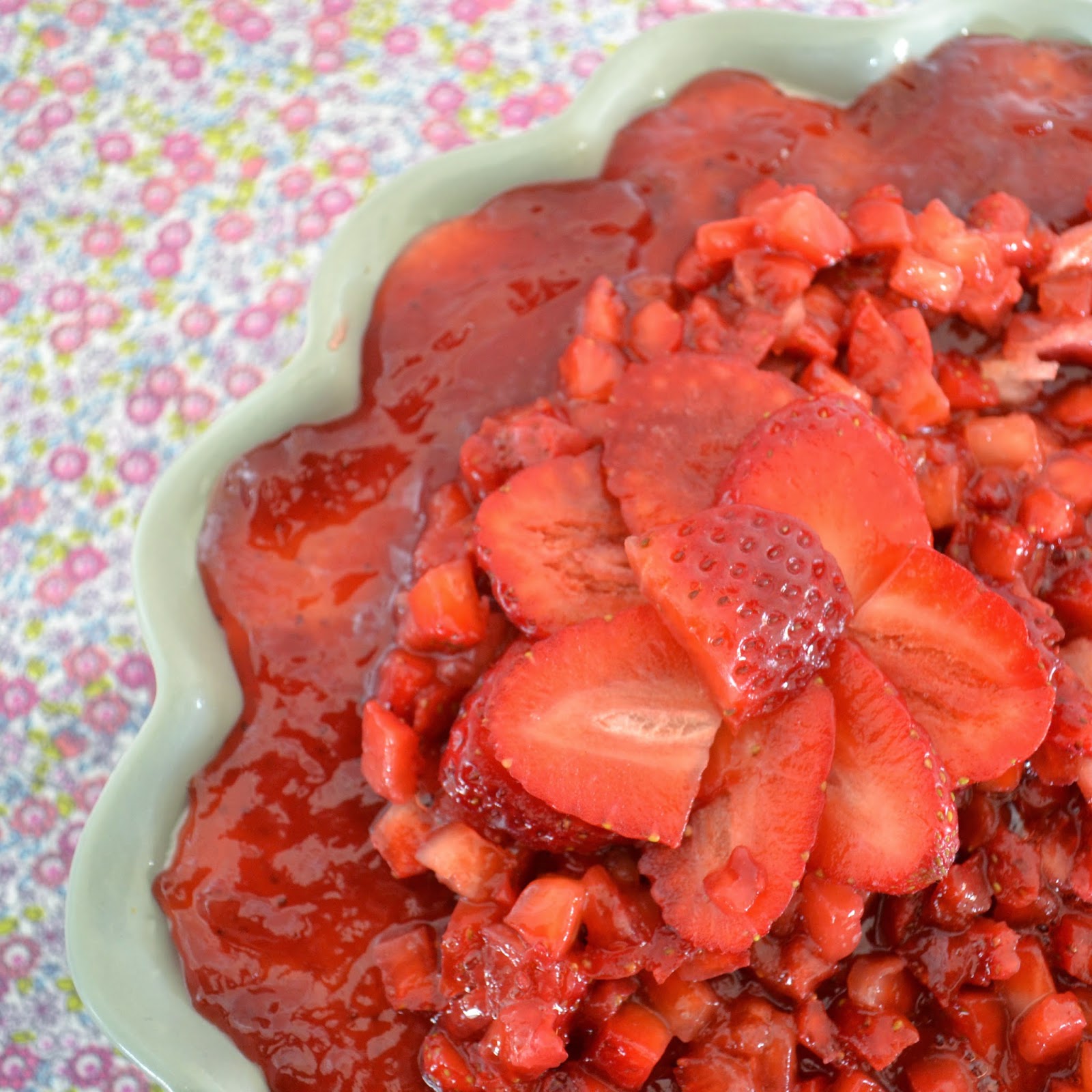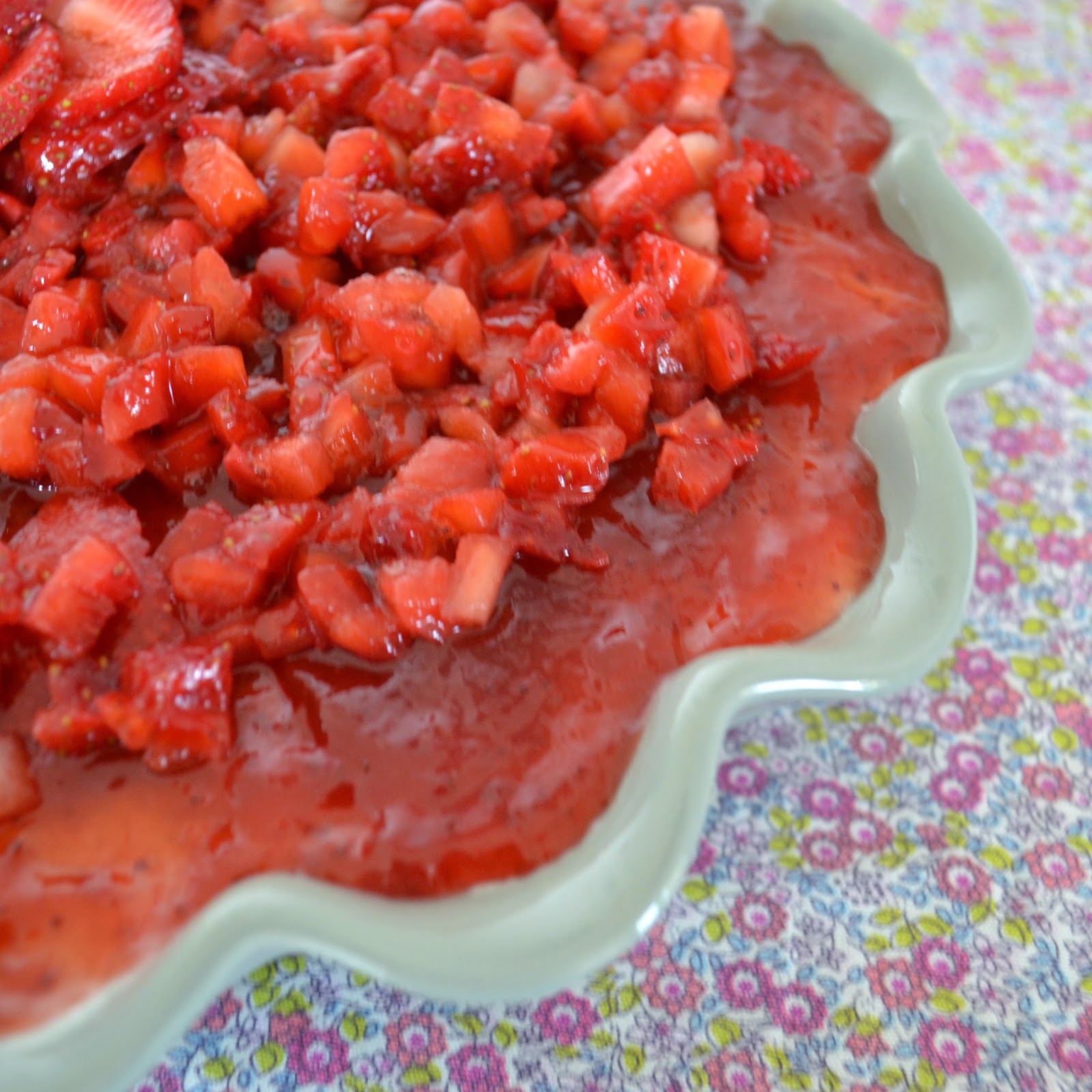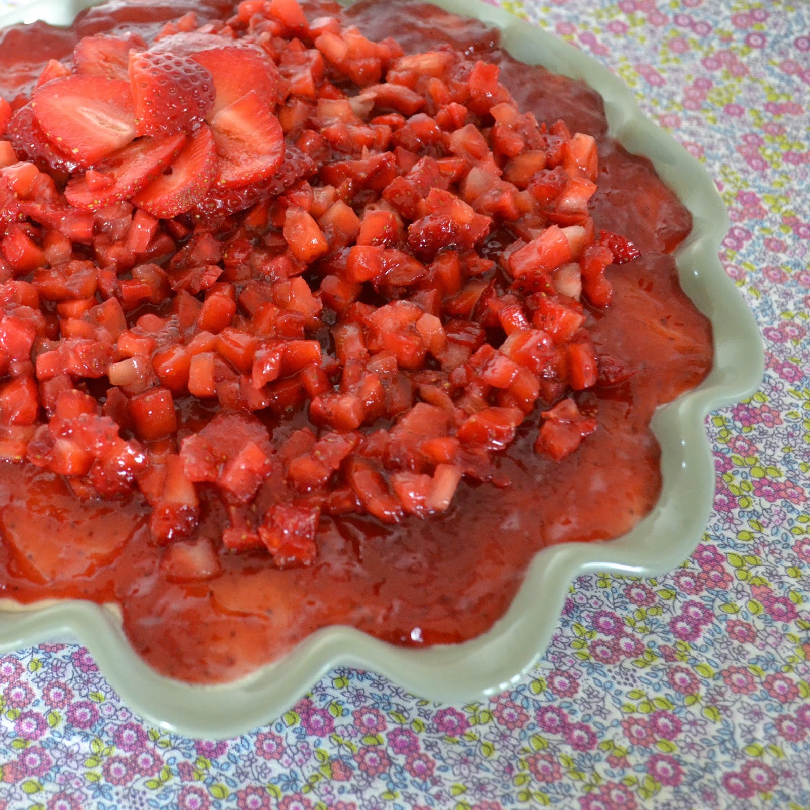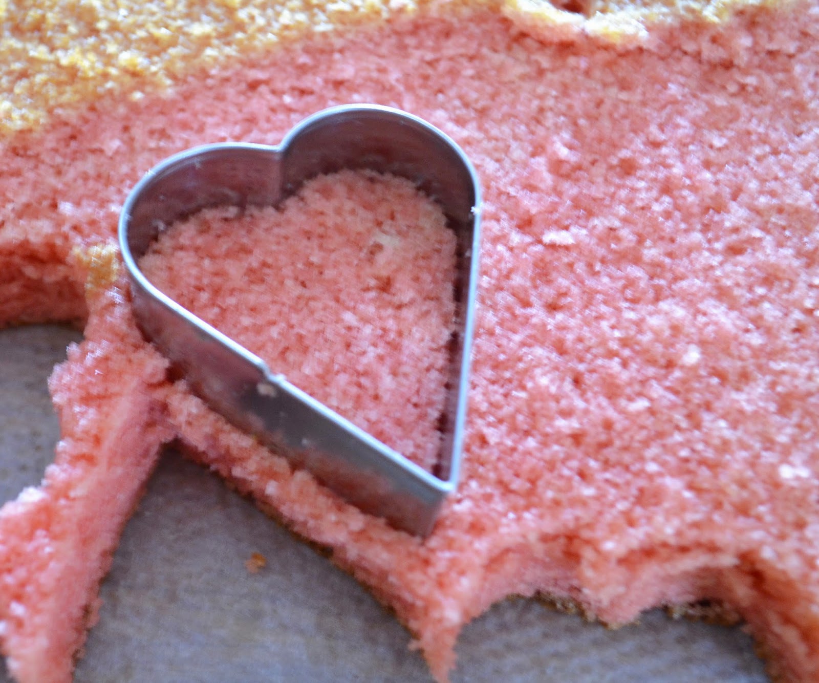 5- Posau aquestes formes sobre les altres, a manera de tapadora. Col·locau un tros de maduixa dins del forat. Jo he laminat les maduixes i les he tallat formant un cor.