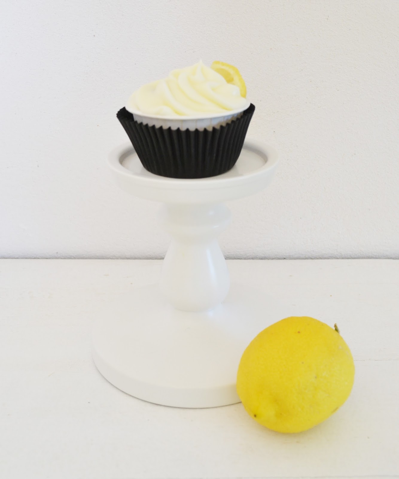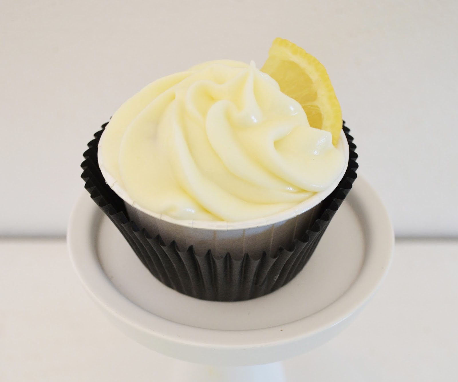 En treure els cupcakes del forn, esperau 5 minutets a treure’ls del motlle metàl·lic. Punxau-los amb un escuradents i pintau-los amb l’almívar. Deixau-los refredar. Un cop estiguin ben freds, decorau amb la màniga pastissera. Per acabar de decorar he posat un trosset de rodanxa de llimona, però en això… cadascú pot fer com vulgui! Visca la creativitat!