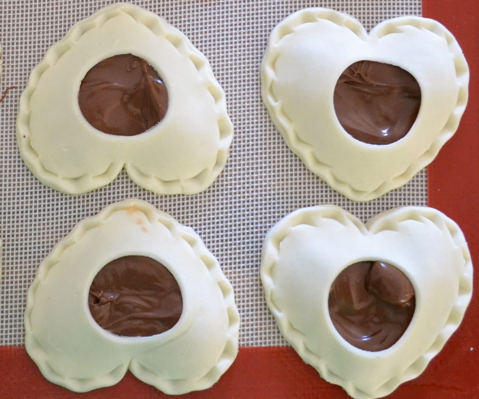 Havia vist uns pastissets semblants per Pinterest, de fet, si entrau dins del meu perfil veureu de què vos estic xerrant. He volgut fer-los pràcticament iguals, només que aquells són farcits de confitura. Jo també ho he intentat, però com que és tan humida no m’ha agradat el resultat. En canvi els farcits de Nutella han quedat perfectes!