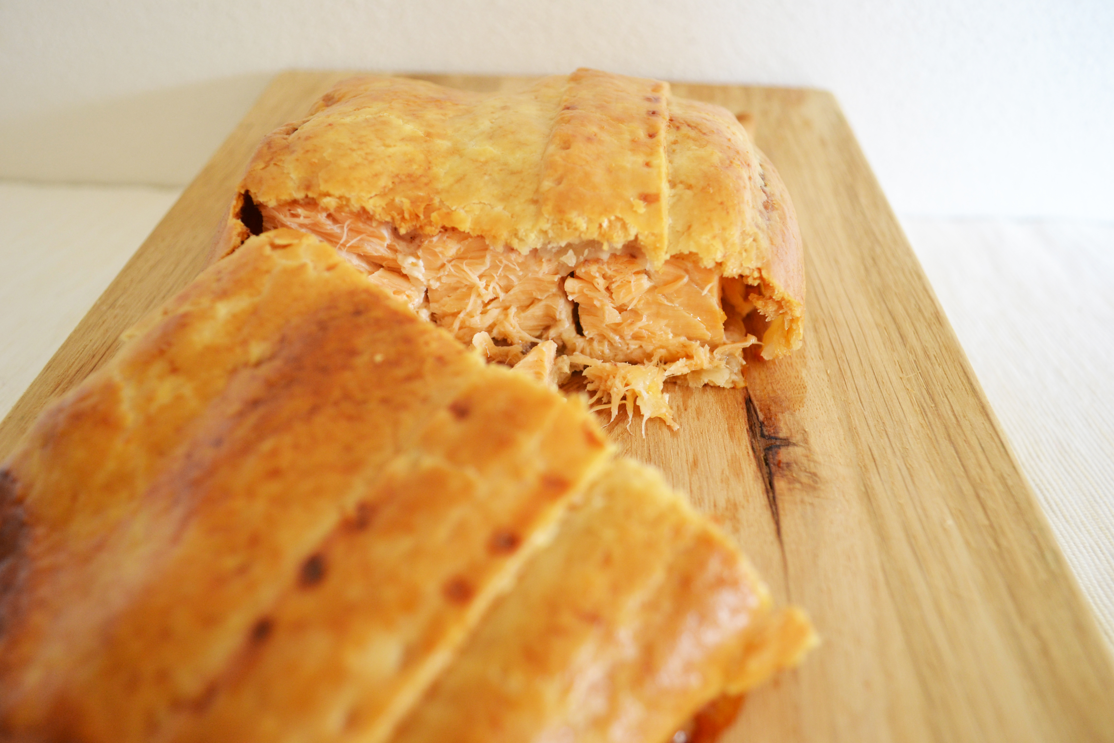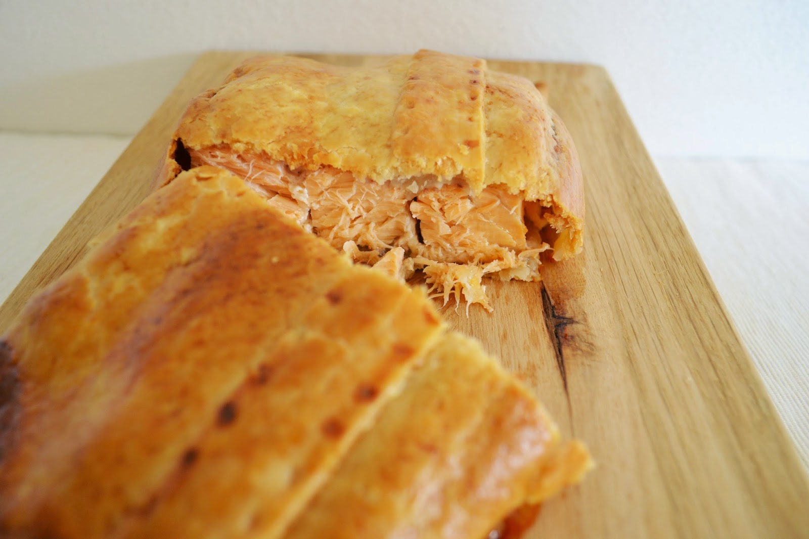 Forn a 180º (no ens varen dir la temperatura, per tant sempre he procurat fer-ho a una temperatura mitjana), i al manco l’he de tenir al forn una mitja hora grossa (depèn de la quantitat de salmó i del gruix de la pasta).