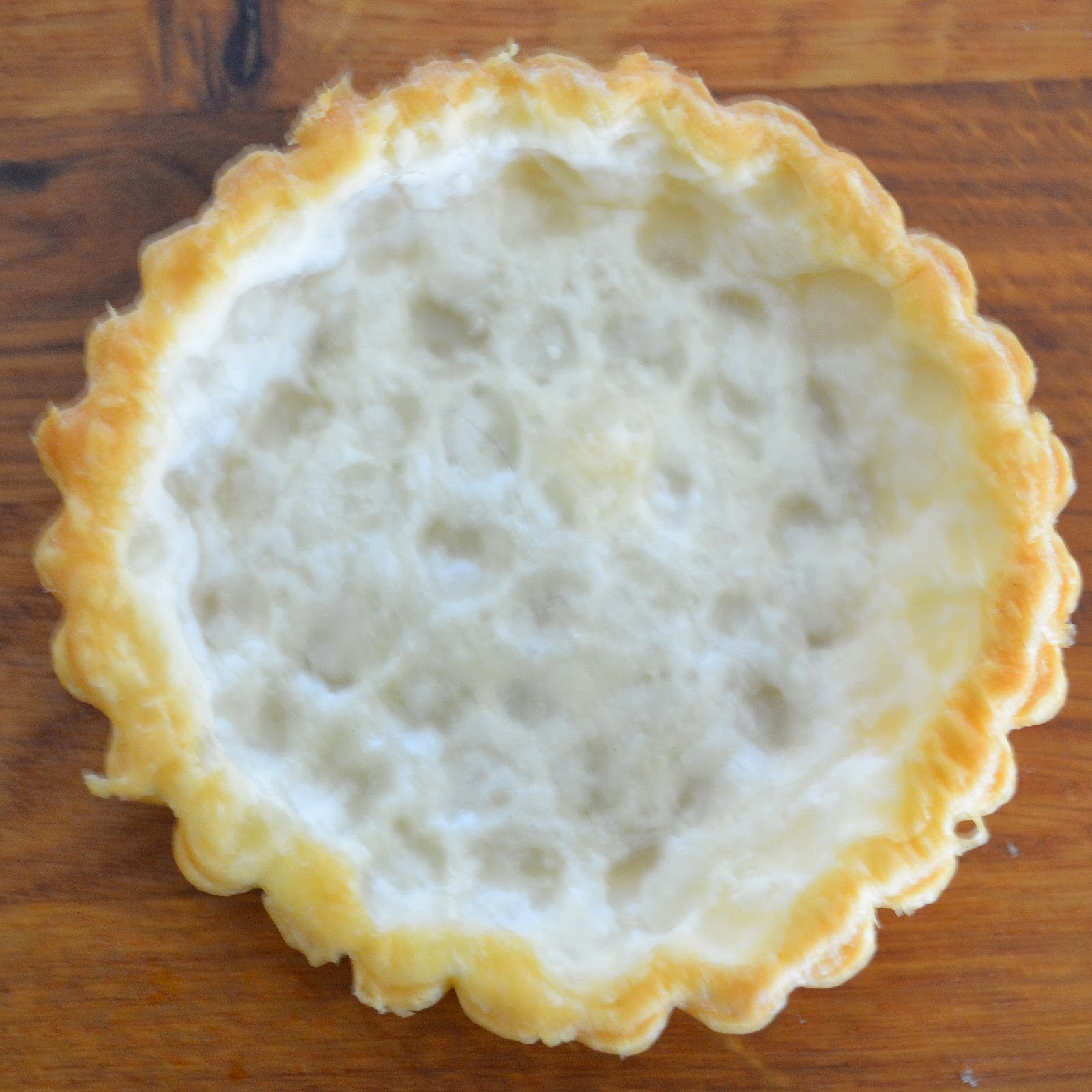 1.- Començau per engreixar els motlles. Jo he posat un spray de la marca Wilton que funciona genial. Llavors posau-los cap per avall sobre la planxa de pasta de fulls i retallau-la (una mica més del diàmetre del motlle, de cada planxa de pasta en surten 7).
